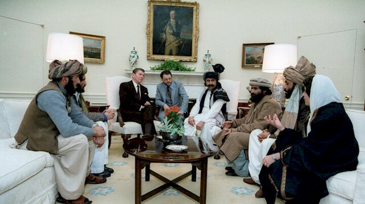 “Solcu şahsiyetlerin Müslüman Kardeşler Cemaati ve Nakşibendi tarikatına desteği, 1983’ten itibaren Soğuk Savaş’ın bir parçası olarak National Endowment for Democracy (NED) tarafından örgütlendi. Başkan Ronald Reagan, SSCB’ye karşı savaşmak üzere bir grup Yahudi ve New York Troçkistini kendi saflarına kattı. İngiliz yanlısı Troçki ve Stalin’i karşı karşıya getiren anlaşmazlık nedeniyle, Troçki taraftarları Five Eye yani “Beş Göz”ün (Avustralya, Kanada, Amerika Birleşik Devletleri, Yeni Zelanda, Birleşik Krallık) gizli servislerine katıldılar. Özellikle de NED’i kurdular. CIA çevresinde gelişen skandallar bağlamında, operasyonlarının bir kısmını yasal yolla gerçekleştirmeyi öngördüler. Mücadelelerine katılmaları için dünyanın her yerinden, özellikle de dönemin iki harekat sahnesinde, yani Afganistan ve Lübnan’da, Troçkist şahsiyetleri devşirdiler.