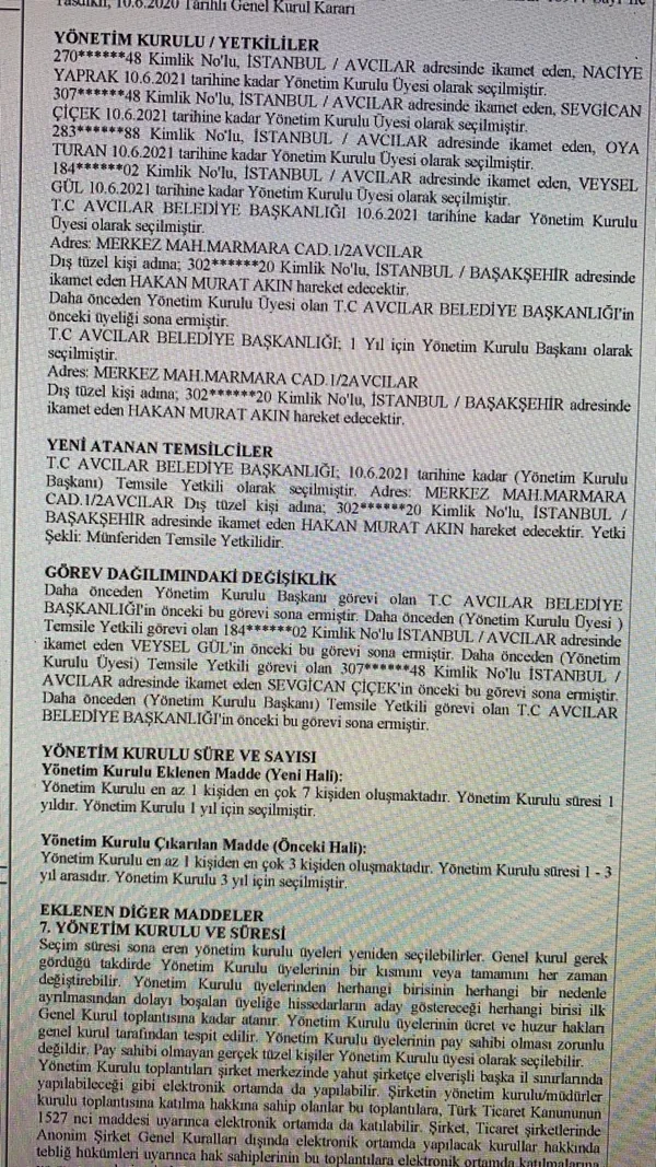 Avcılar Belediyesi iştirak şirketi Bathonea Yapı A.Ş.'de; Avcılar Belediyesi Meclis üyeleri Naciye Yaprak, Sevgican Çiçek, Oya Turan ve Veysel Gül Yönetim Kurulu üyesi olarak görev yaptığı ifade edildi.