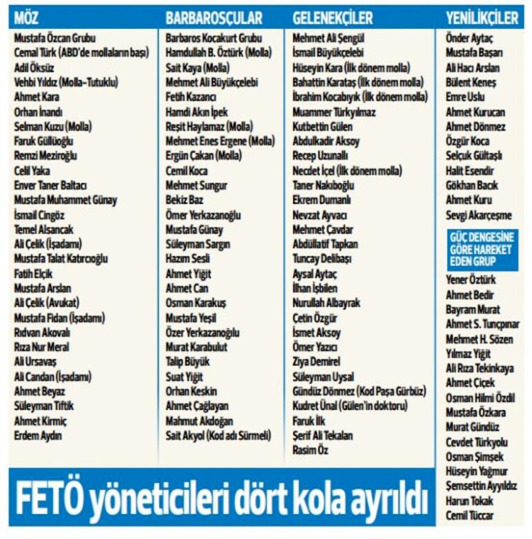Hürriyet'ten Nedim Şener'in örgüt içi mücadeleye ilişkin verdiği bilgilere göre FETÖ dörde bölünmüş durumunda.