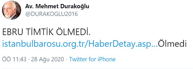 Timtik'in ölmesinin ardından "Ebru Timtik ölmedi" mesajı atan Durakoğlu, terör örgütü dhkpc sanıklarının "adil yargılanmadığını" savunmuştı.