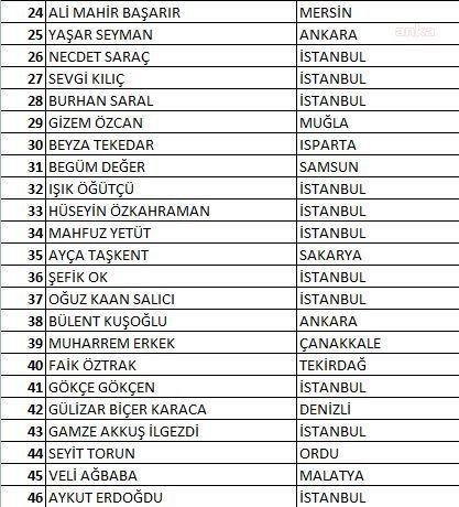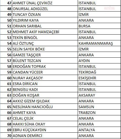 Kılıçdaroğlu'na ait olduğı belirtilen anahtar listenin tamamı şöyle: