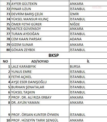 Geçen kurultayda da anahtar listede yer almayıp liste delen, bu kurultayda da yeniden aday olan isimler şöyle: Erdal Aksünger, Gökhan Günaydın, Haluk Pekşen, Gaye Usluer, Ali Şeker ve Necati Yılmaz.