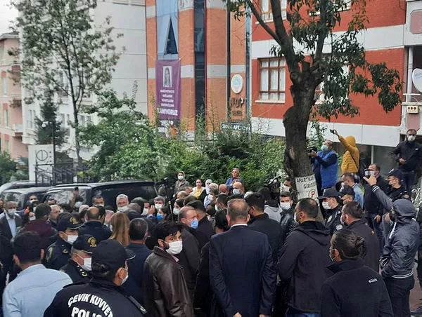 Laçin, sabah saatlerinde geldiği genel merkez önünde HDP milletvekilleri ve partililerin tepkisiyle karşılaştı. Bu sırada milletvekilleri ve polis arasında da gerginlik yaşandı.