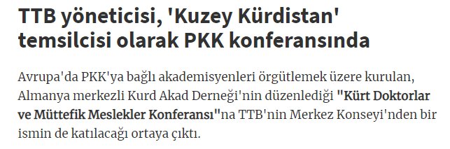 Bu kez TTB Merkez Konseyi üyesi olarak seçilmiş bir meslektaşımız Avrupa’da düzenlenen ve buram buram ayrılıkçılık ve bölücülük kokan bir etkinlikte boy göstermekten kaçınma gereği duymuyor.