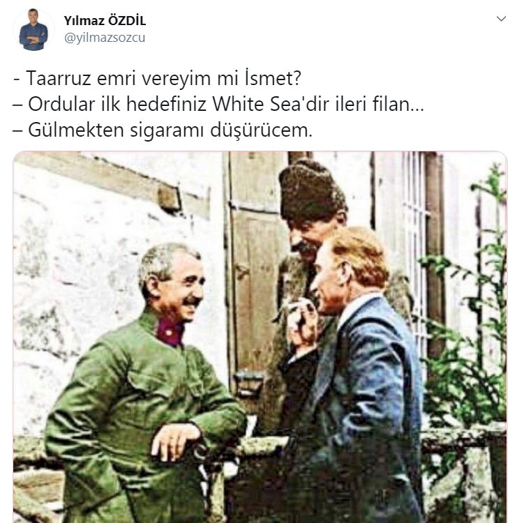 Mustafa Kemal Atatürk ve İsmet İnönü'nün fotoğraflarını paylaşan Özdil, ikili arasında hayali bir diyalog uydurdu.