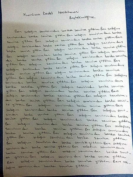 Ancak bu öneri Başhekim tarafından kabul görmeyince Çalışkan ve Yetkin A4 kağıdına 500 kere, "Ben salağım servisimden başka servise gittim" yazdı. Çalışkan ve Yetkin, 7 sayfalık metni, "Başhekimin ısrarı ile kaleme alınmıştır" notu düşerek imzaladı. Uygulama, sağlık sendikaları tepki göstermişti.